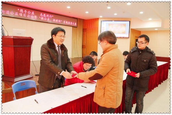 元月22日,杨浦区五角场街道社区志愿中心牵头启动了2014年“公益伙伴推广计划”。 上海三湘(集团)有限公司作为五角场街道下属志愿者服务单位,应邀出席了本次授牌仪式。本次公益计划是组织五角场辖区内热衷公益事业的企业、社会组织、群众团队,利用各自的资源优势为五角场地区的群众提供公益服务。延续2013年度志愿活动职责,今年提供的志愿资源辐射到“为老服务、助学服务、交通文明”等。三湘股份董事会秘书徐玉代表三湘集团签约并上台接受授牌。