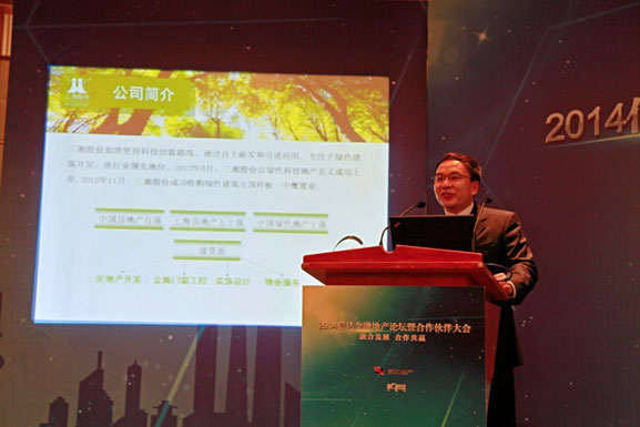 11月27日,三湘股份总经理许文智受邀出席在上海国际会议中心举行的2014信达金融地产论坛,副总经理张涛在信达合作伙伴大会上发表题为《绿色、健康、环保——新常态下房地产行业的战略选择》的演讲,向大会传递三湘股份坚持创造绿色人居生活的理念和梦想。