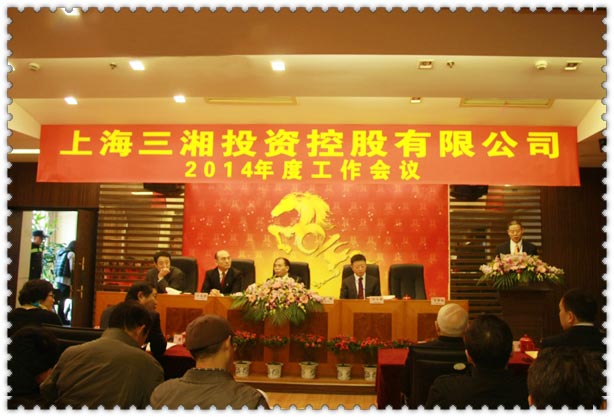 金蛇起舞颂功去,骏马奔腾报捷来。2014年1月23日下午,上海三湘投资控股有限公司2014年度工作会议在公司12楼多功能会议厅隆重举行,三湘控股、三湘股份董事长黄辉先生、三湘股份总经理许文智先生、三湘股份副董事长芮永祥先生、三湘控股副总裁陈劲松先生、三湘控股总法律顾问王庆华先生及三湘股份全体高管出席了会议,各单位副总以上人员及先进集体代表、优秀个人参加了会议。湖南炎帝生物工程有限公司和三河市湘德房地产开发有限公司作为两个分会场通过视频同步参会。