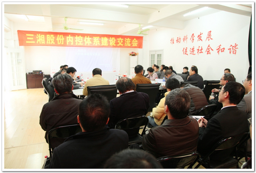 2013年3月5日下午,三湘股份内控体系建设交流会在三湘四季花城小区举行。公司定于4月份正式启动内控体系建设试运行,希望通过这一交流会的形式发现存在的问题,从而对内控体系适度调整,提高试运行质量,为内控真正落地提供保障。三湘股份总经理许文智等全体高管、立信锐思合伙人高垚博士及各子公司、各职能部门副总以上领导等50余人参加了会议。